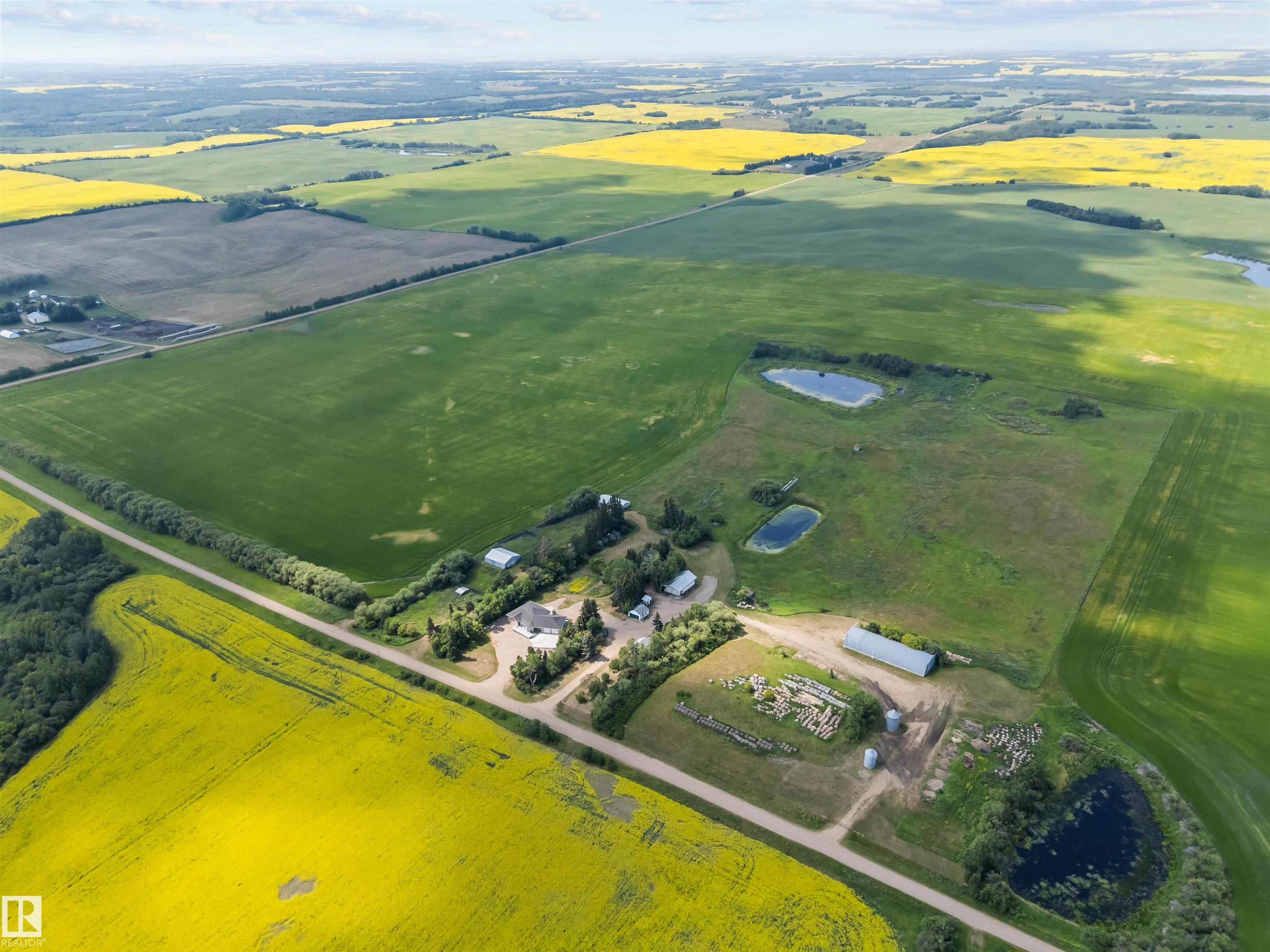 Build a legacy starting here, with 160 acres of rich prairie land in Two Hills County. Before exploring the sprawling yellow crops and green pasture, step inside the pure luxury of this custom bungalow. Whether its the dream kitchen with massive pantry, secluded patio with hot tub, or 4 massive bedrooms and bathrooms, you'll see craftsmanship throughout the almost 5000sqft living space. That attention to detail continues into the oversized garage with in floor heating as well as the expansive basement where family can relax together after a days work is done. The original farm house with septic and well still stands, adding an additional element of possibility. Did we mention the cattle set up, or seeded 125 acres? Woops, we probably also forgot the extended and life time warranties on elements of the home too. This is one of those rare chances to own a part of the Alberta landscape without sacrificing a comfortable lifestyle.