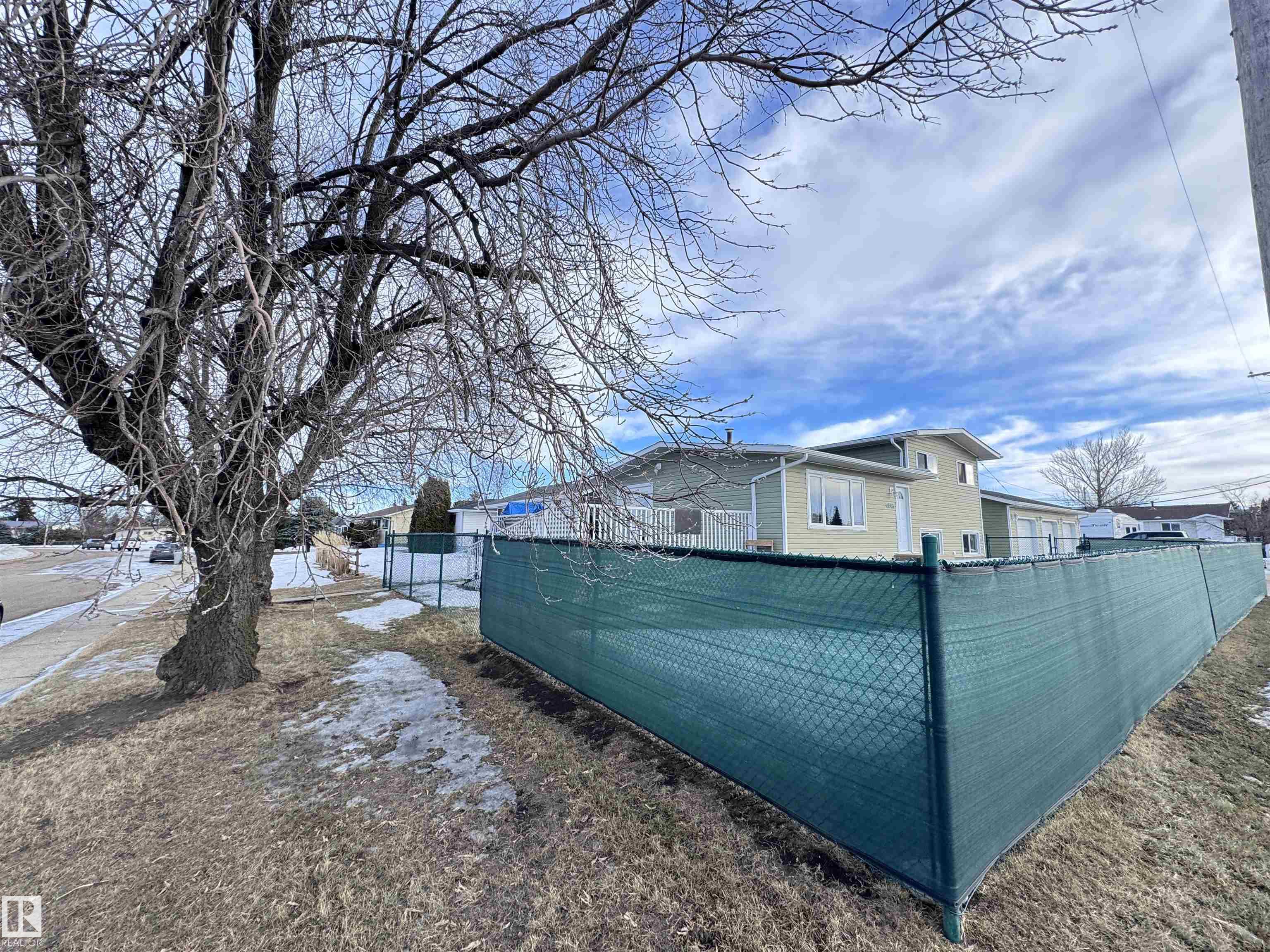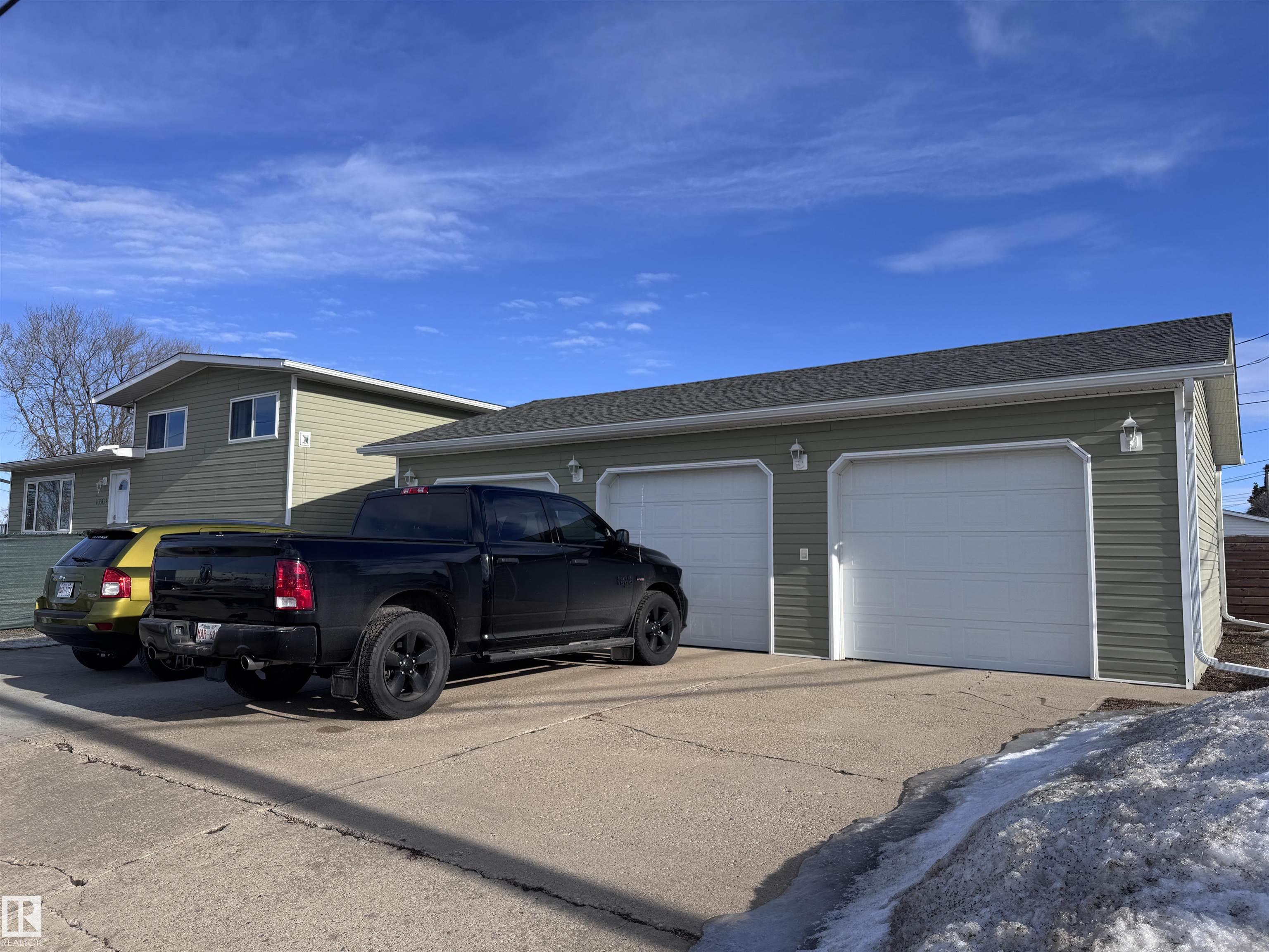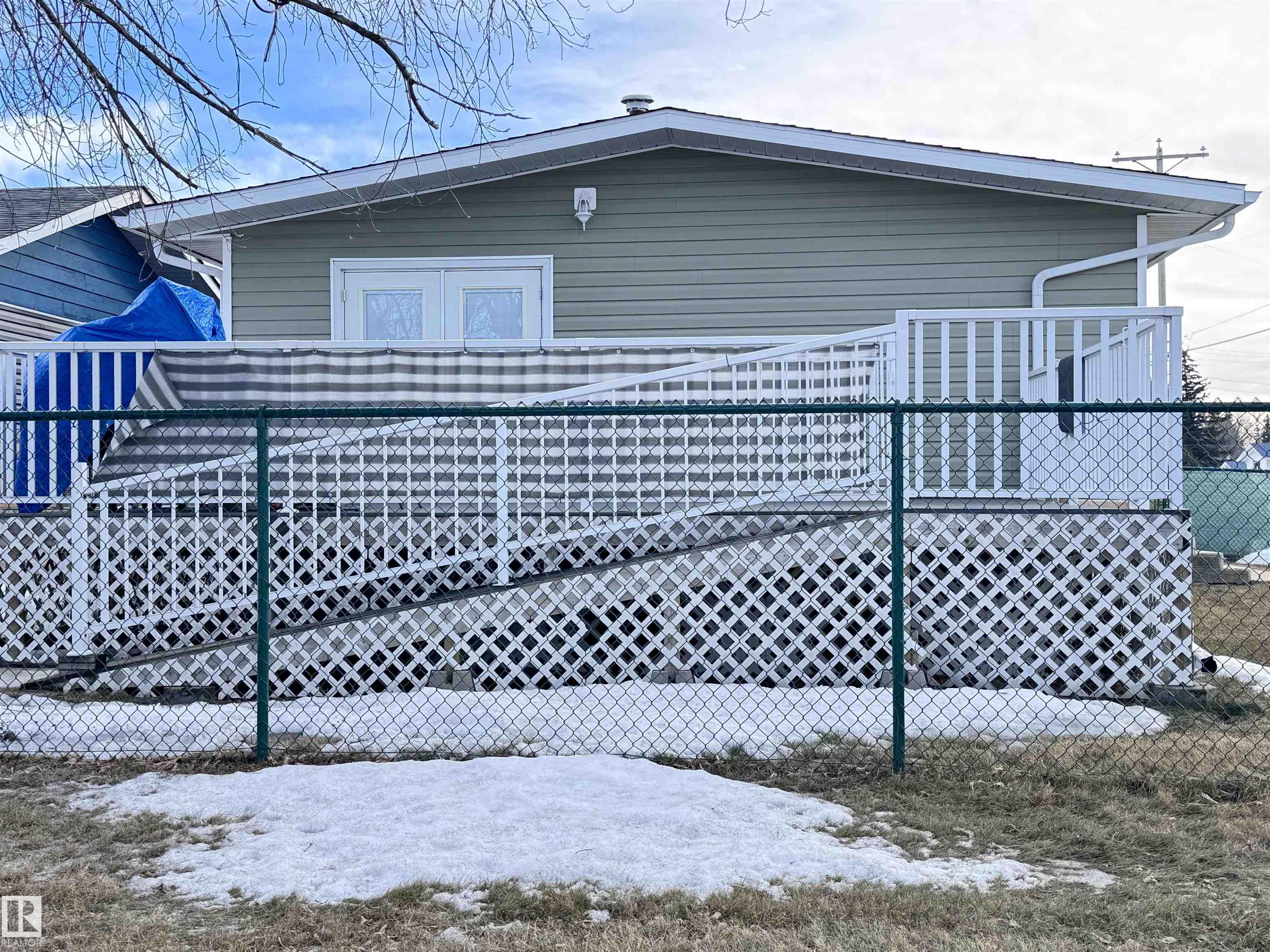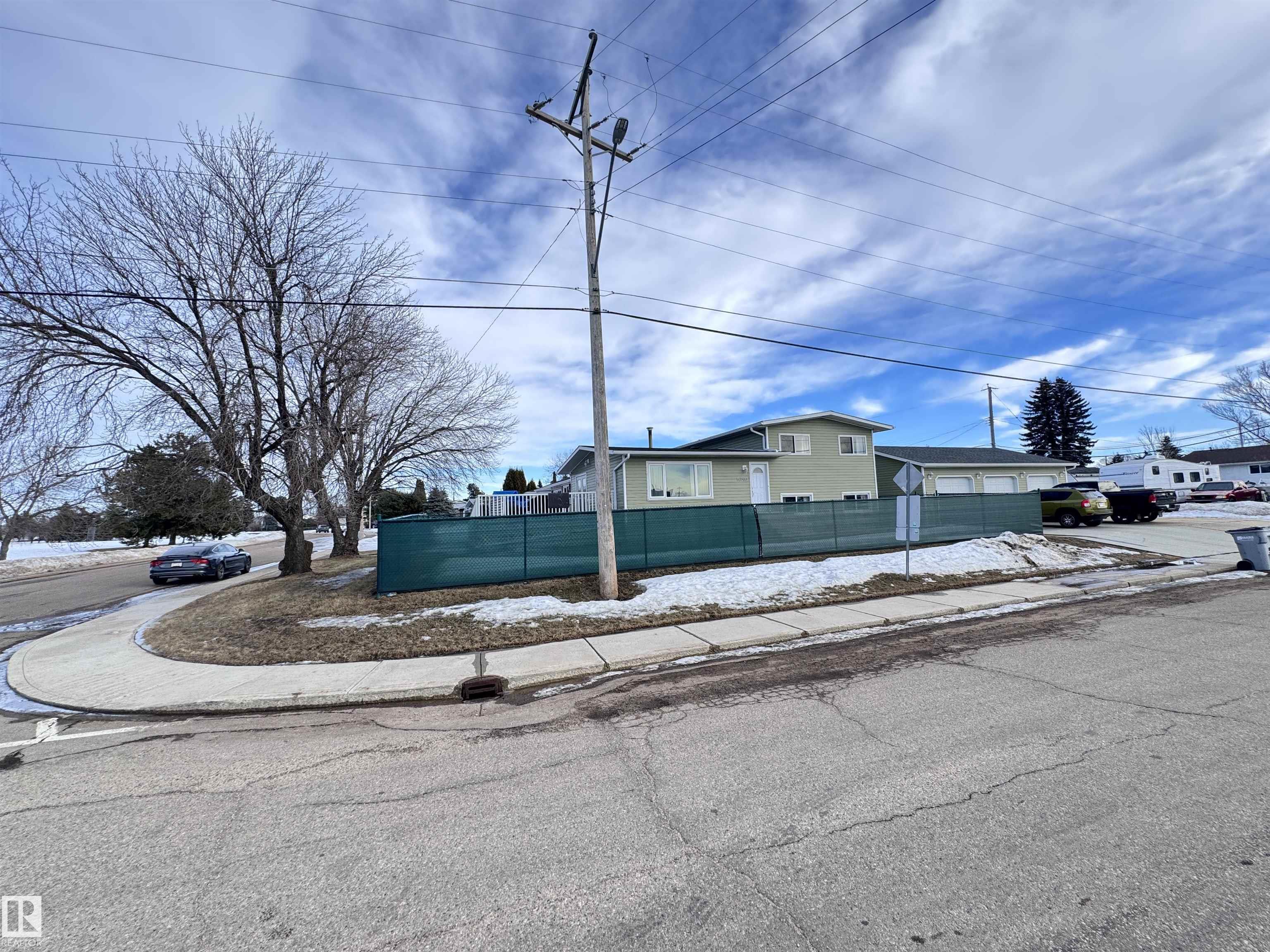 Beautiful family home with a 26ž38.5 triple garage, perfectly located right across from Westlock Elementary! Offering over 2,225 sq ft of finished living space, this well-maintained property features a huge rear mudroom leading to a cozy family room, plus a bright main floor with a spacious kitchen, abundant solid oak cabinetry, generous counter space, and dining area with access to the composite deck with aluminum railing. The front living room completes the main level. Upstairs you'll find a renovated 4-pc bath and three bedrooms, including a primary suite with his-and-hers closets. The basement offers a large rec room, storage, vented cold room, mechanical area, 3-pc bath, and laundry. Outside, enjoy chain-link fencing, a massive patio, and ample parking. With only one neighbor to the east and direct access to school, park, and outdoor rink, this is an ideal family property with exceptional space and storage. Wheel chair ramp is removable if not needed.