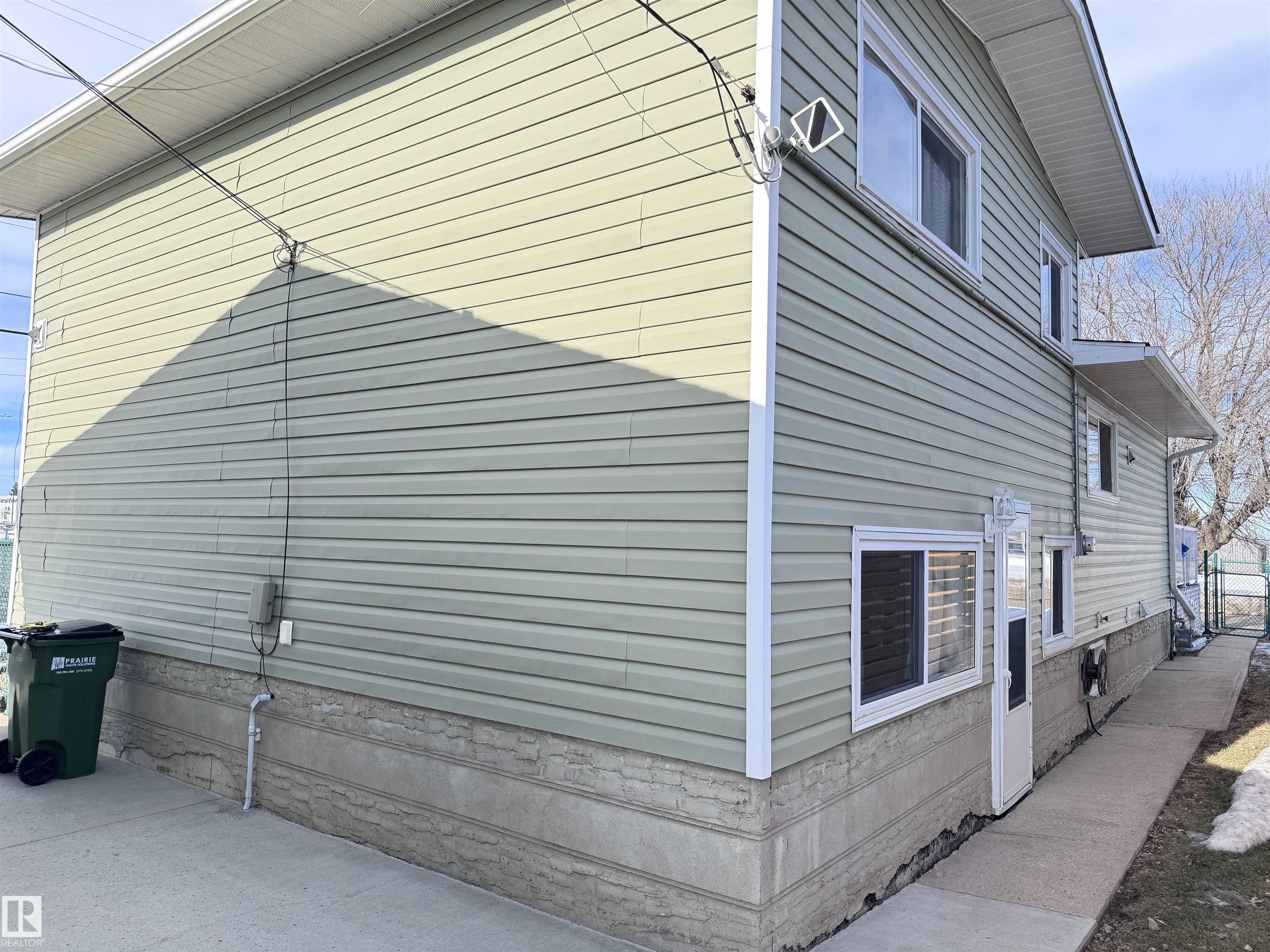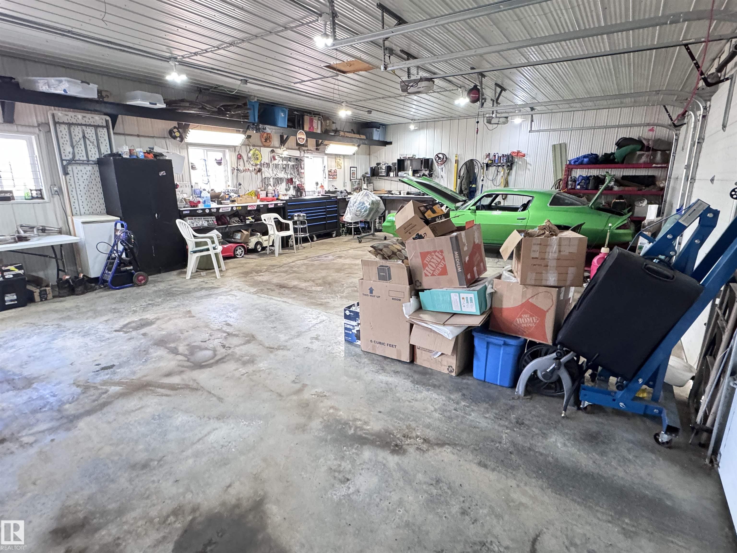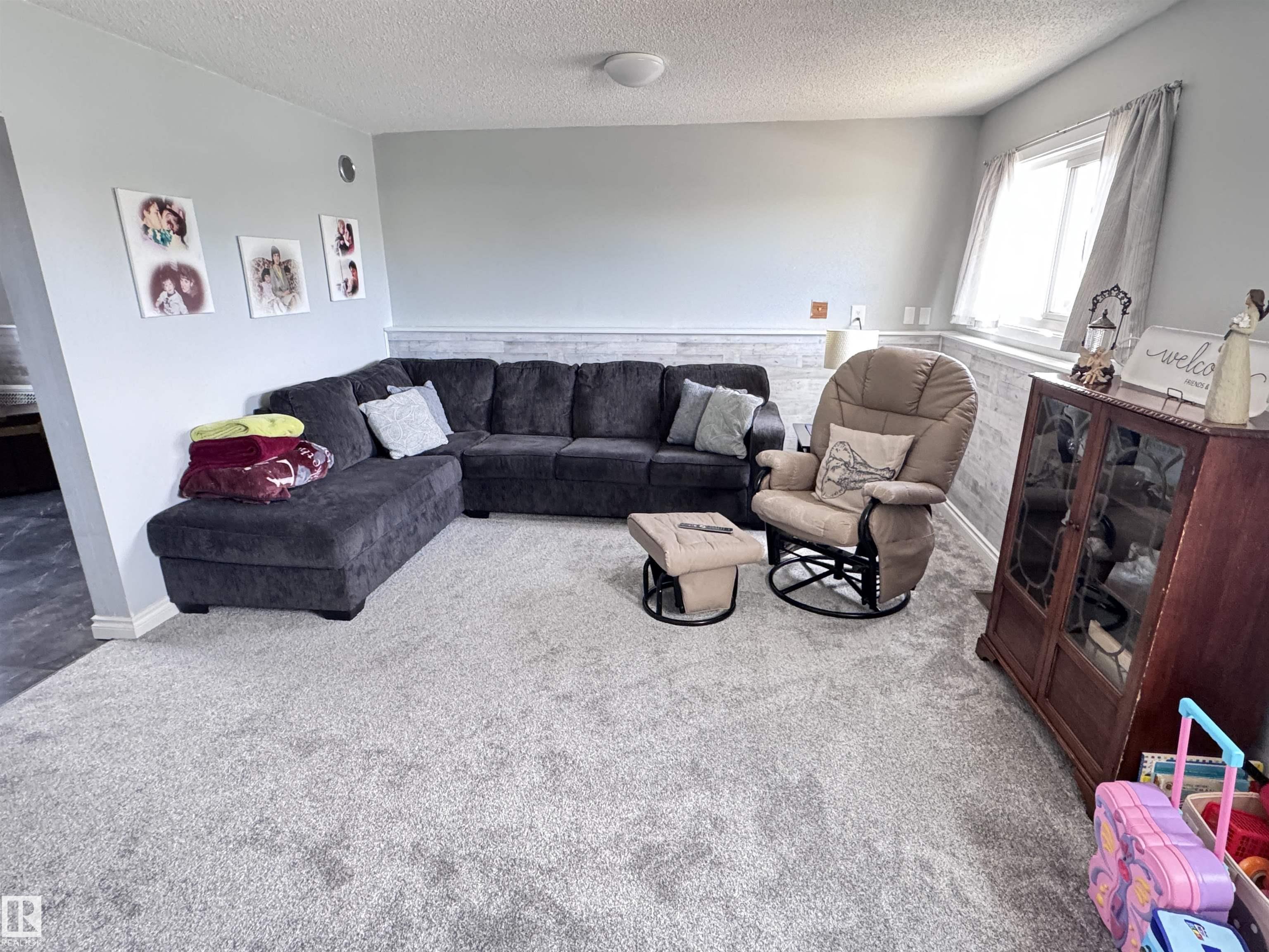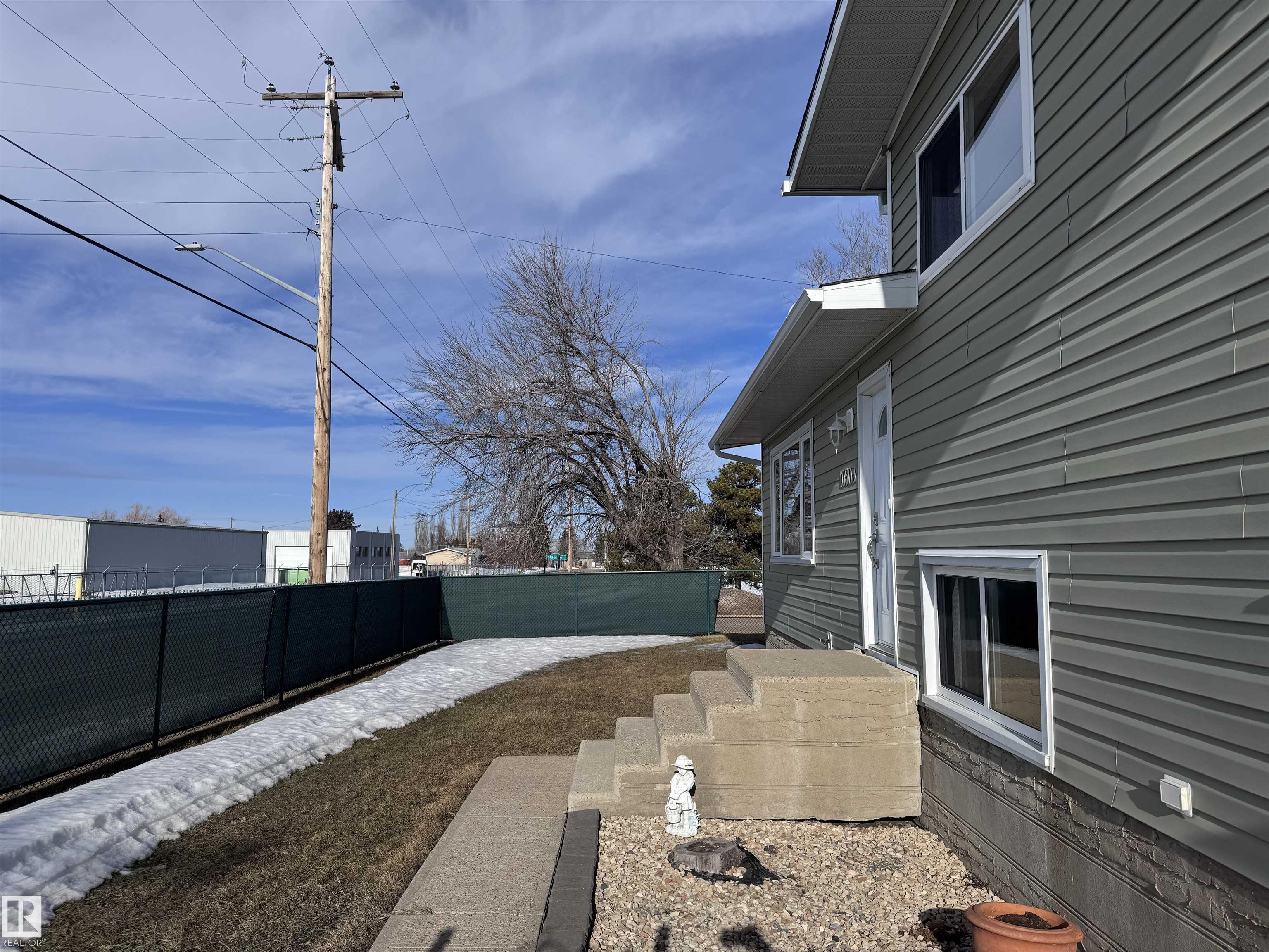 Beautiful family home with a 26ž38.5 triple garage, perfectly located right across from Westlock Elementary! Offering over 2,225 sq ft of finished living space, this well-maintained property features a huge rear mudroom leading to a cozy family room, plus a bright main floor with a spacious kitchen, abundant solid oak cabinetry, generous counter space, and dining area with access to the composite deck with aluminum railing. The front living room completes the main level. Upstairs you'll find a renovated 4-pc bath and three bedrooms, including a primary suite with his-and-hers closets. The basement offers a large rec room, storage, vented cold room, mechanical area, 3-pc bath, and laundry. Outside, enjoy chain-link fencing, a massive patio, and ample parking. With only one neighbor to the east and direct access to school, park, and outdoor rink, this is an ideal family property with exceptional space and storage. Wheel chair ramp is removable if not needed.