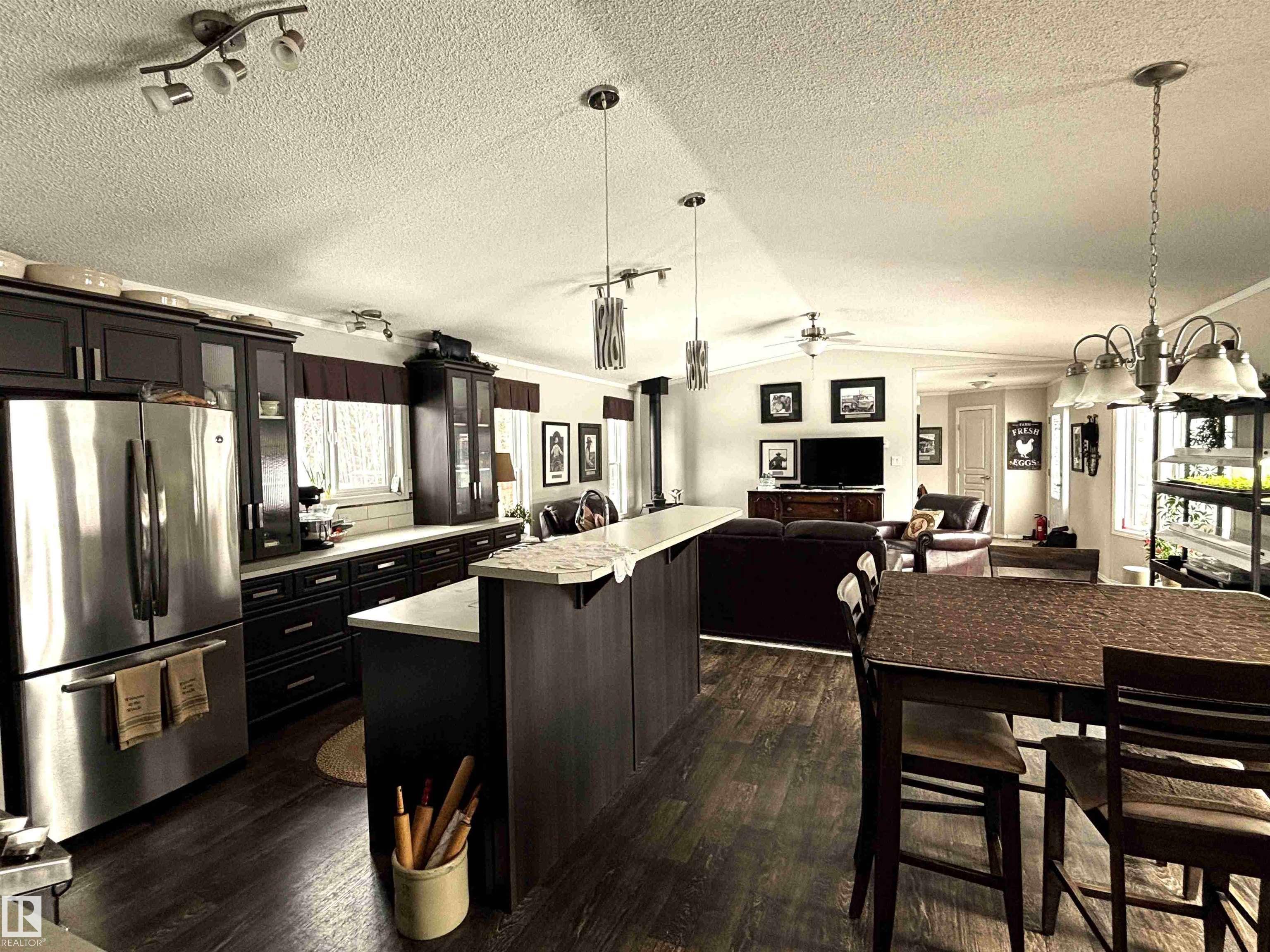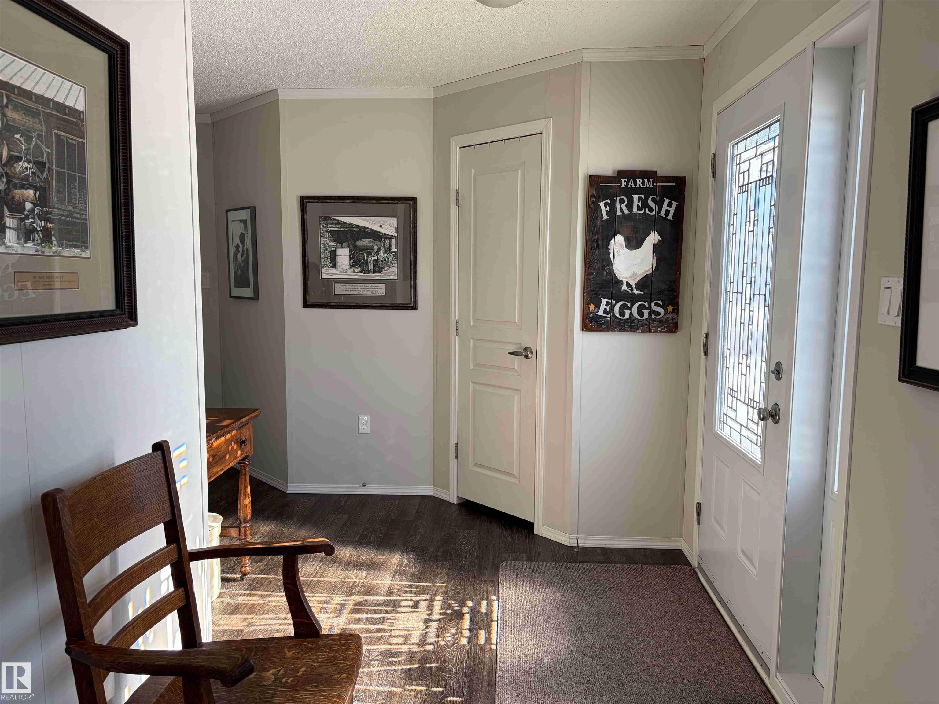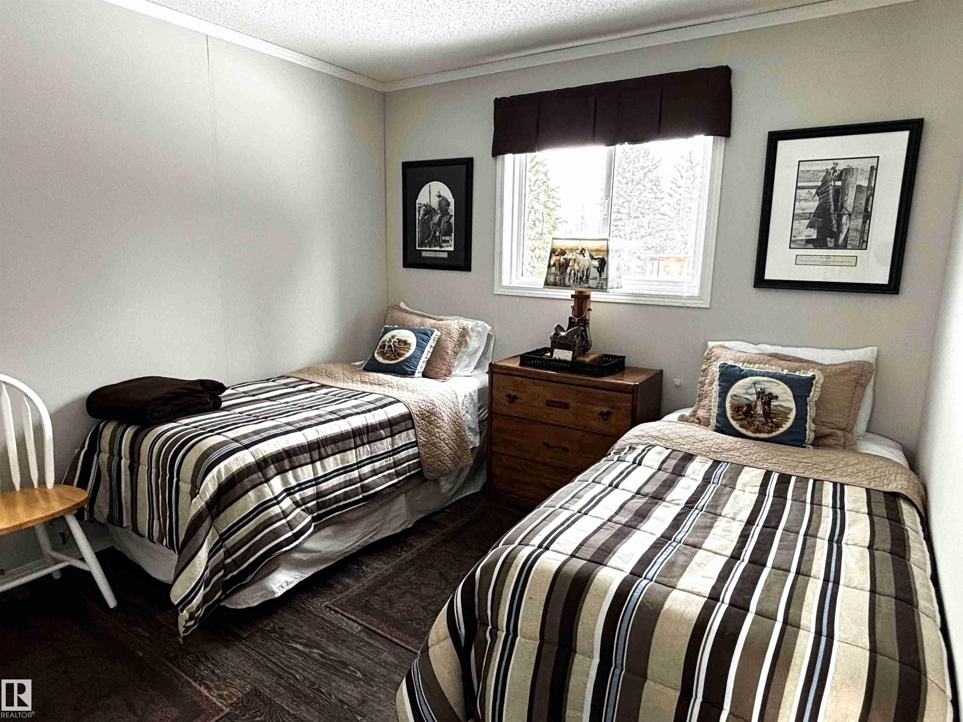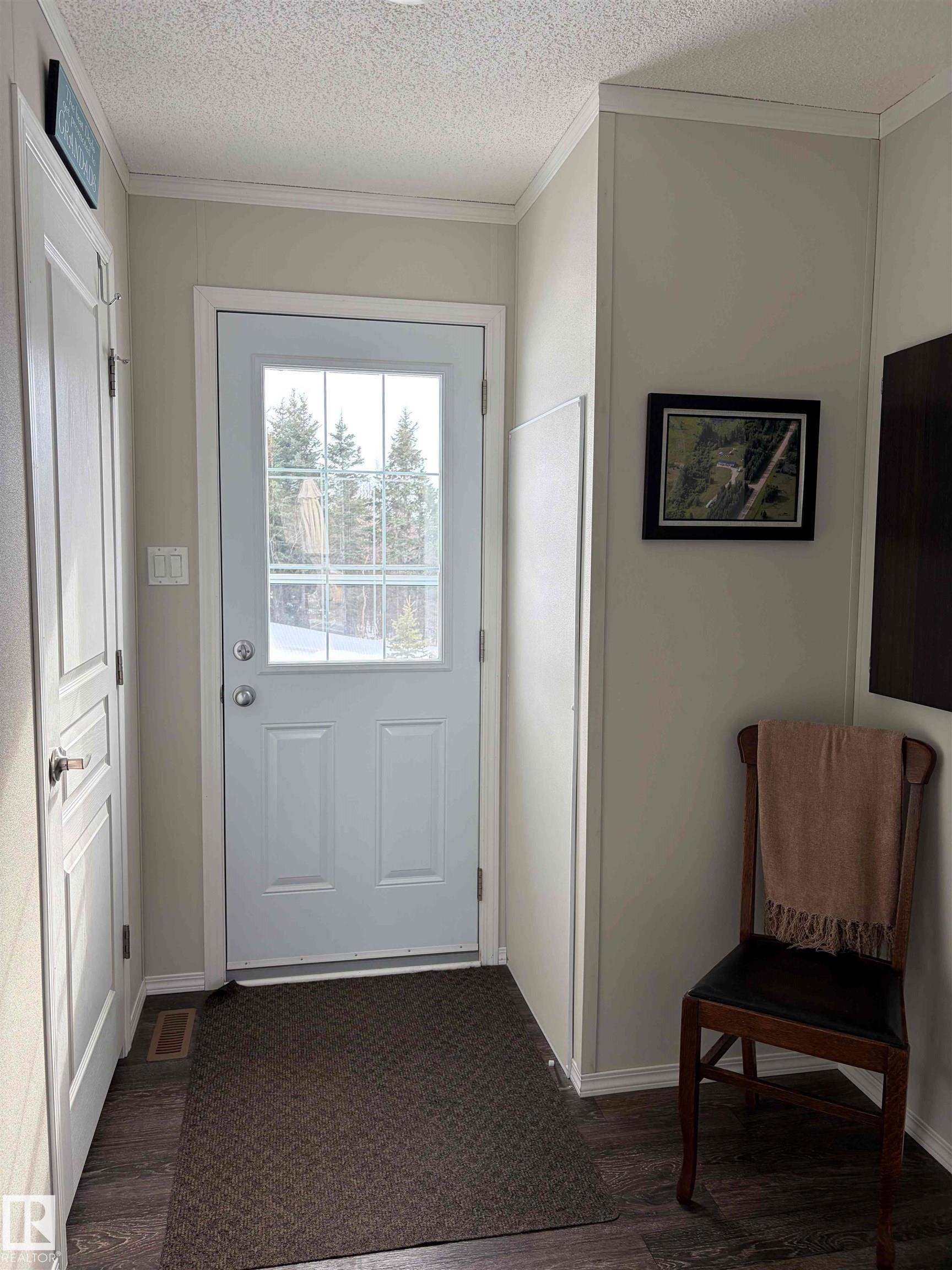 Great opportunity to embrace everything country living has to offer! This scenic 51-acre parcel features a well-maintained 1,520 sq ft mobile home (2015) set within a beautifully manicured and private yardsite. The home is thoughtfully designed with numerous south-facing windows, filling the space with natural light while providing beautiful views of the surrounding landscape. Outside, the property is perfectly set up for a hobby farm or rural lifestyle, complete with a greenhouse, raised garden beds, two chicken houses, a storage shed, woodshed and a seacan for additional storage. The property offers a versatile mix of hay and grazing land, seasonal creeks and mature trees, --ideal for horses or cattle. Conveniently located between Winfield and Breton, this unique property combines peace, privacy, and practicality in a picturesque rural setting.