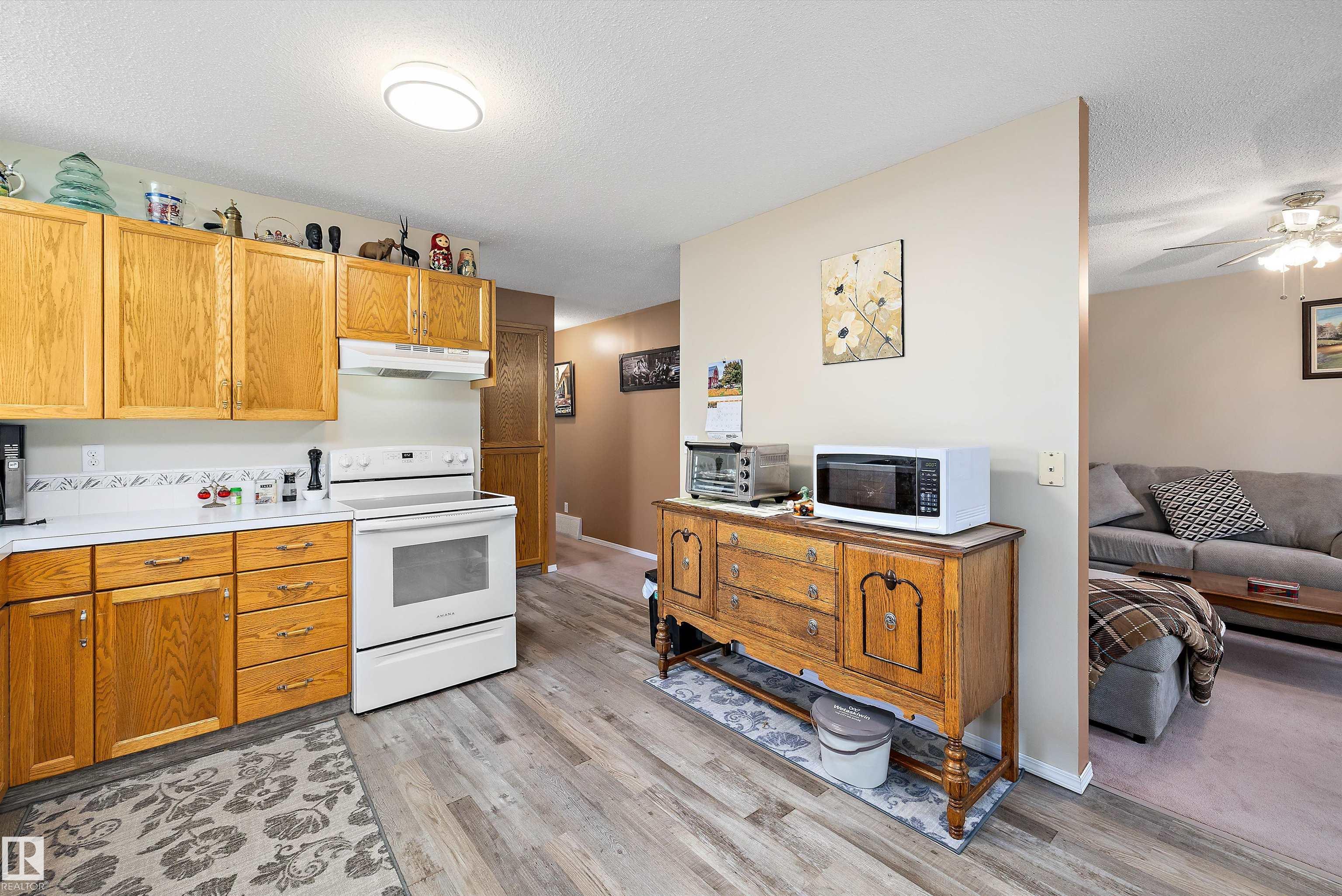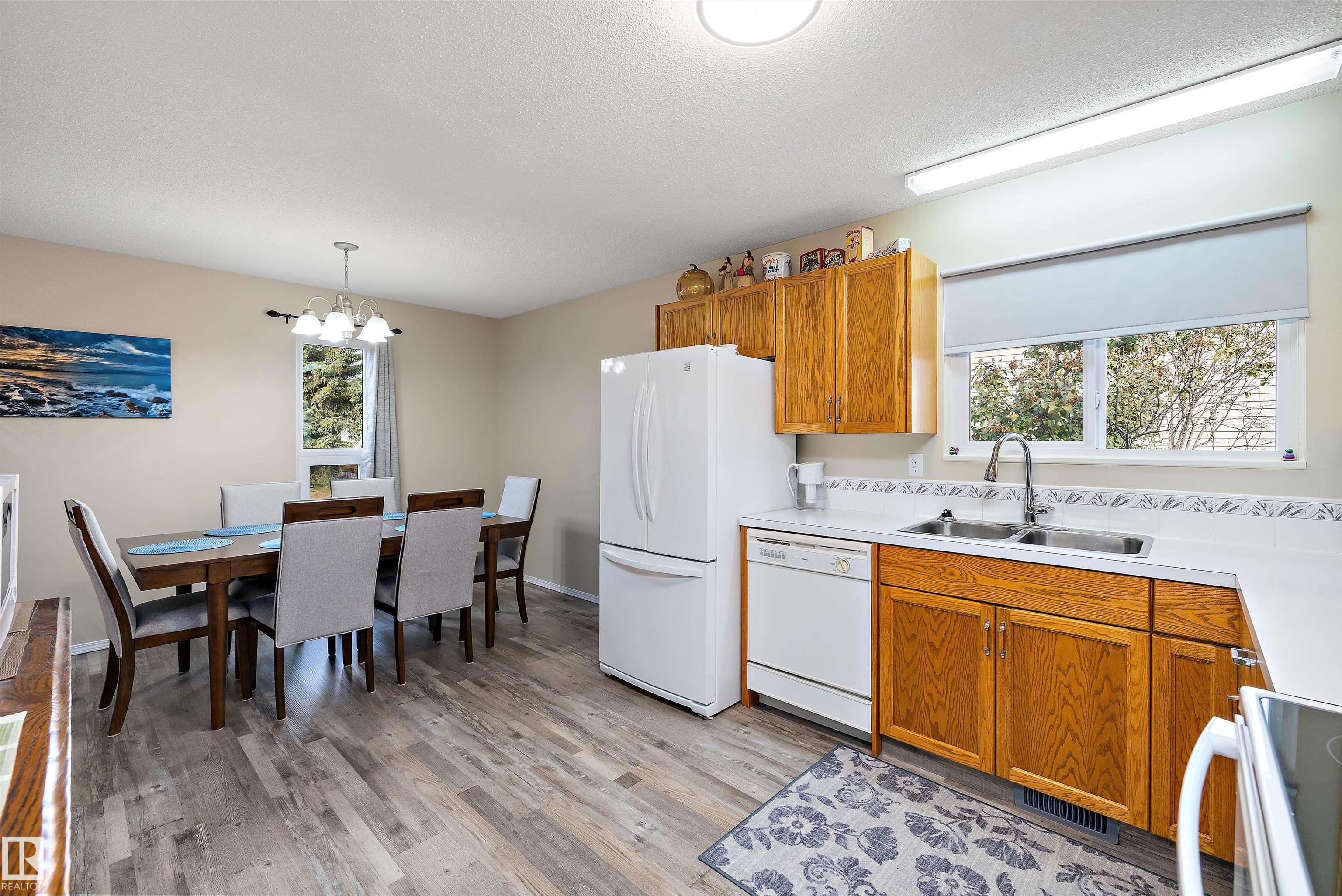 Welcome to this charming 2-BEDROOM, 1.5-BATHROOM BUNGALOW offering 1002 SQ. FT. of well-maintained living space in a QUIET NEIGHBOURHOOD WITH GREAT NEIGHBOURS. Situated on a LARGE LOT with an OVERSIZED 14' X 22' DETACHED GARAGE, this home has plenty to offer. The main floor features a BRIGHT & SPACIOUS LIVING ROOM WITH FLOOR-TO-CEILING WINDOWS, a DINING AREA, & a KITCHEN WITH LOADS OF STORAGE, PANTRY, & NEW VINYL PLANK FLOORING (2024). Both bathrooms have been RECENTLY UPDATED, including the 2PC ENSUITE in the LARGE PRIMARY BEDROOM. The PARTIALLY FINISHED BASEMENT offers a FAMILY ROOM AREA & COLD STORAGE. Once outside, enjoy the BEAUTIFUL BACKYARD WITH NEW FENCING, AN APPLE TREE and CONCRETE PATIO. Notable upgrades include NEW WINDOWS (2023), ATTIC INSULATION INCREASED FROM R20 TO R45, HOUSE SHINGLES (2022), GARAGE SHINGLES (2024), GARAGE DOOR & MOTOR (2017), FURNACE (2008), HOT WATER TANK (2013), NEW PAINT INSIDE & OUT (2025), & a NEW PARKING PAD (2025). MOVE-IN READY & FULL OF VALUE!